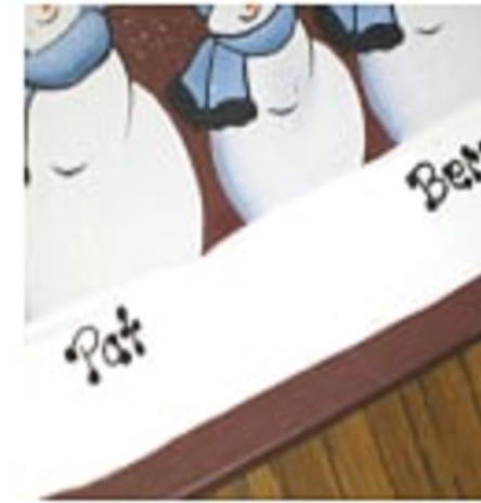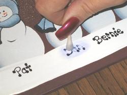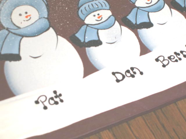 | Frequenty Asked Questions Question 1: How do I add names or fix mistakes on a sign? Adding names: I use an extra-fine black paint pen (found in most art supply stores) and a stick and ball craft font. In adding to names already on the sign, you should practice on a side piece of paper to match the size and style. Fixing mistakes: You will need paint thinner, a Magic Eraser (sold at most stores) and a cotton makeup remover pad or several Q-tips. It is easier to remove the whole name rather than to try to just remove one letter. Dip the cotton pad (or a Q-tip) in the paint thinner and begin to rub off the name. This may take several tries with several new Q-tips. When most of the name is removed, the remaining can be cleaned up with a wet Magic Eraser. Let dry and reapply as described above. |